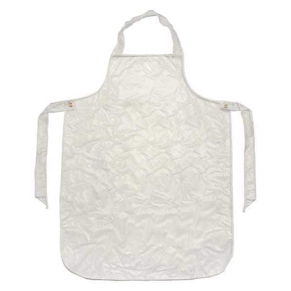 Bib Apron, Apron Material Vinyl, Apron Type Bib, Color Clear, Grommet Material Metal, Overall Length 36 in, Overall Width 27 in, Packaging Individually Packaged, Seam Style Stitched Cotton Binding Securing All Edges
