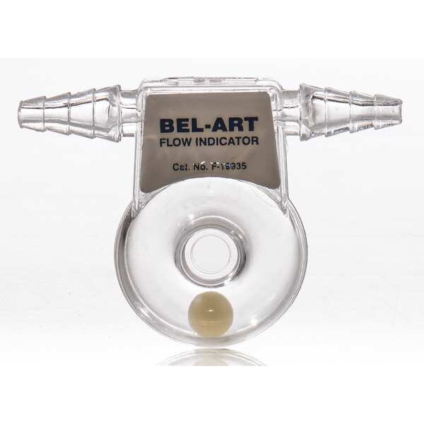 Flow Indicator, Indicator Type Ball, Body Material Polycarbonate, Connection Size 3/8 in, Connection Type Barbed, Operating Pressure - Maximum 10 psig, Sight Diameter Not Applicable, Number of Windows Not Applicable, Flow Direction Horizontal, Vertical, Media Temperature - Minimum 40 Degrees F, Media Temperature -Maximum 175 Degrees F, Seal Material Not Applicable, For Media Type Water, Overall Length 2.3 in, Overall Width 1.2 in, Wetted Material Nylon, Polycarbonate