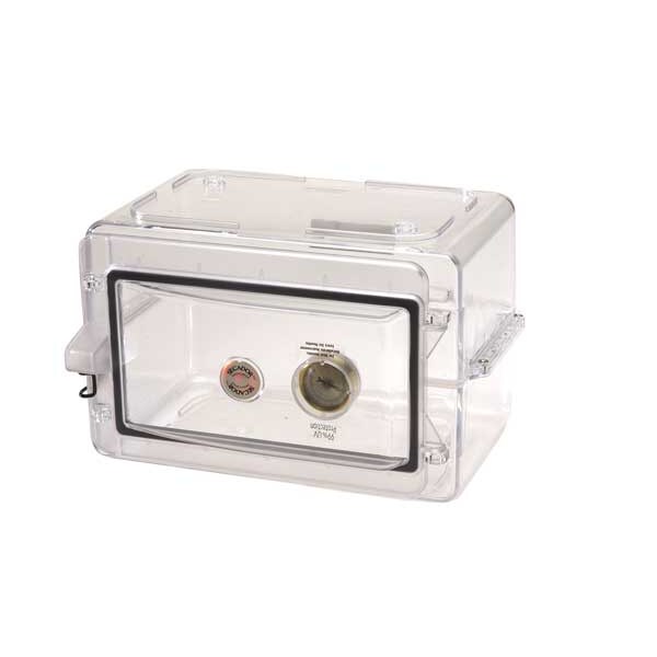 Mini Desiccator Cabinet, Overall Height 8 1/2 in, Overall Length 10 in, Overall Width 13 3/10 in, Color Clear, For Use With Small Moisture-Sensitive Objects and Substances