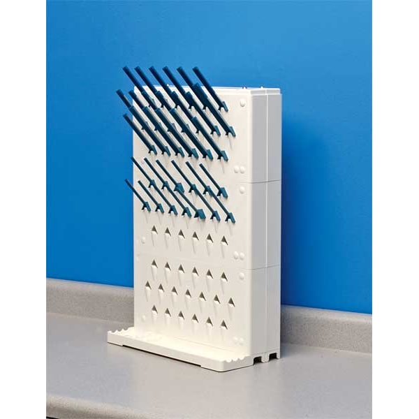 Item Non-Electric Benchtop Dryer, Number of Pegs 57, Material ABS Plastic, White, Height 22-1/2 In., Width 14-3/4 In., Format Single Sided, 3 Tier, For Use With Beakers, Flasks, Bottles, Test Tubes and Cylinders, Includes (18) 3 In., (21) 4 In., (18) 5 In.