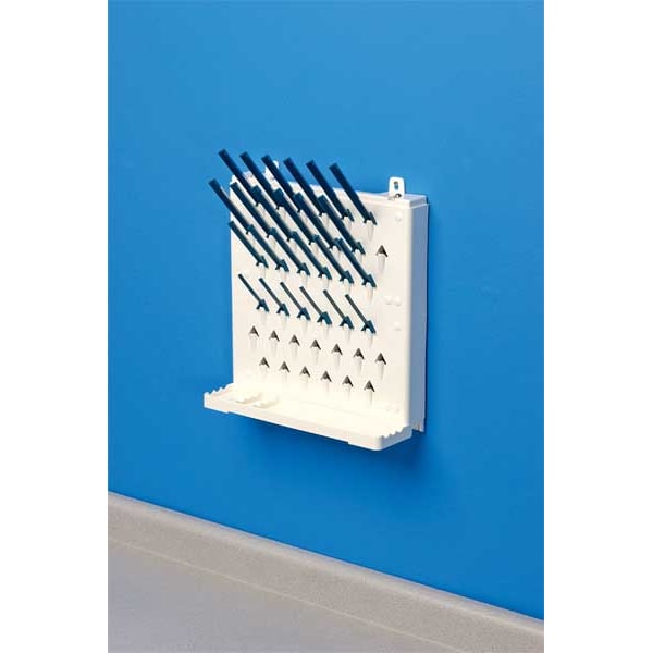 Item Non-Electric Wallmount Dryer, Mounting Type Wallmount, Number of Pegs 38, Material ABS Plastic, Height 23-1/2 In., Width 16-1/2 In., Format Single Sided, 2 Tier, For Use With Beakers, Flasks, Bottles, Test Tubes and Cylinders, Includes (12) 3 In., (14) 4 In., (12) 5 In.