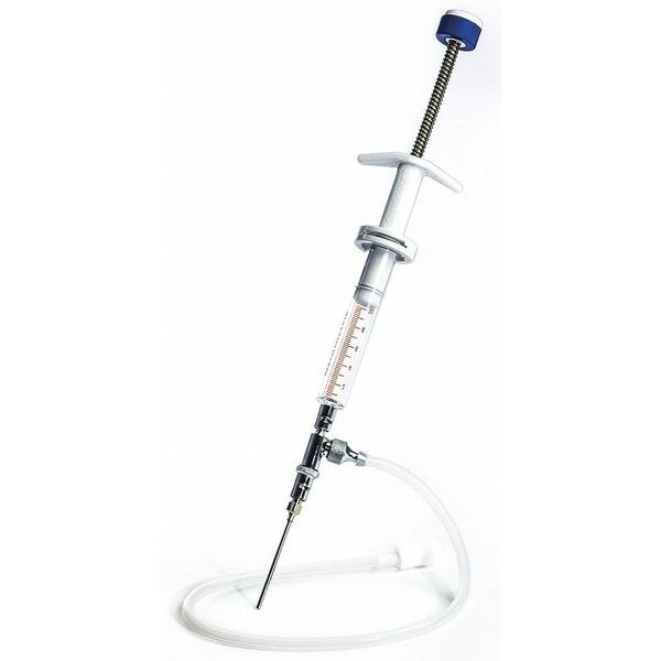 Polypropylene Handle, PTFE Plunger, Borosilicate Glass Syringe, Chrome Plated Check Valve, Luer Lock Fitting, Buna-N-Seals, Stainless Steel Spring and Luer Lock Cannula