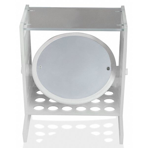 Polypropylene base with a clear acrylic deck for plate placement. Adjustable mirror for viewing underside of plates.