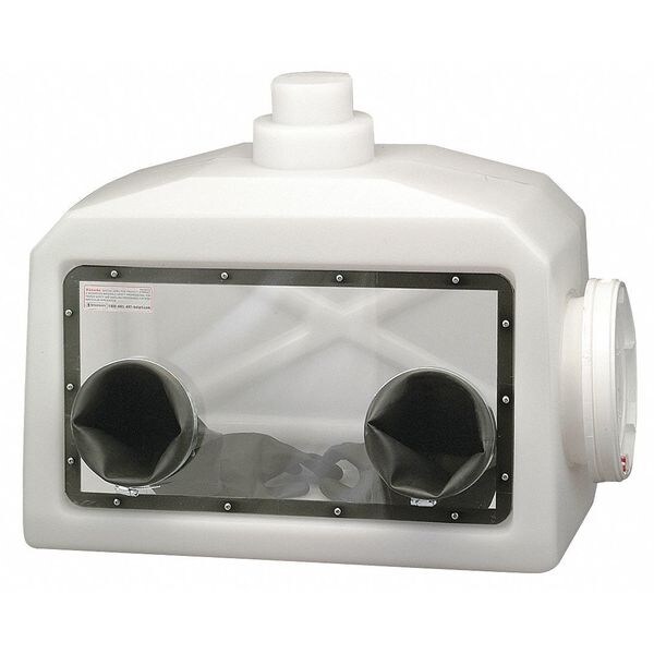Portable Glove Box, Number of Ports 2, Opening Size 8 in, Material Polyethylene, Length 13 in, Width 27 in, Height 22 in, Includes (1) Pair Of Gloves And (2) Clamping Rings