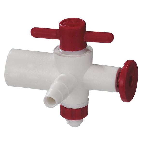Stopper, Stopper Size Not Applicable, Overall Height 102 mm, Material Polypropylene, Product Type Replacement Stopcock, Color Red/White, Autoclavable Yes, Number of Holes Not Applicable, Standards FDA, Special Features 3-Way Stopcock, Resists Most: Acids, Alchols, Bases and Esters, For Labware Type Desiccators, Liner Material None; PTFE/Butyl; Rubber; Silicone; PTFE/Silicone; PTFE/Rubber