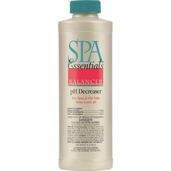 Spa Essentials pH Decreaser is used to lower the pH and total alkalinity in spas. Maintaining proper water balance levels ensure bather comfort and protect the spa and equipment from damage. High pH can cause cloudy water, use this product to lower the pH.Spa Essentials pH secreaserPrevents cloudy water due to high pHLowers pH and total alkalinityBalances water for bather comfort