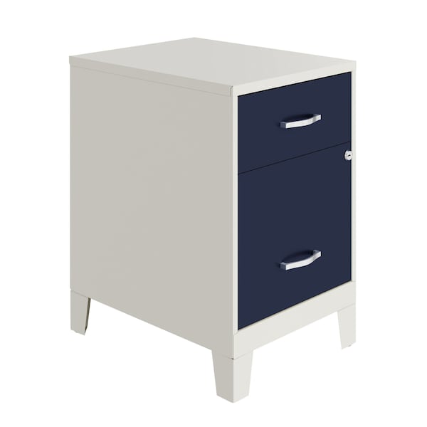14.25 in W 2 Drawer Vertical File Cabinet W/ Accessory Drawer & Legs, Pearl White / Navy