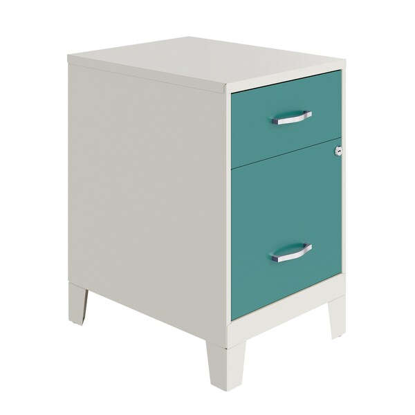 14.25 in W 2 Drawer Vertical File Cabinet W/ Accessory Drawer & Legs, Pearl White / Teal