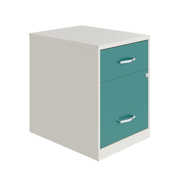 14.25 in W 2 Drawer Vertical File Cabinet W/ Accessory Drawer, Pearl White / Teal
