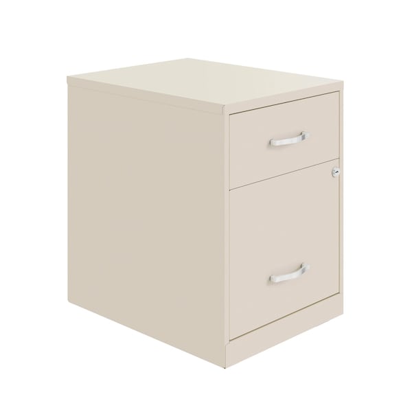 The Two Drawer Metal File Cabinet is a multi-functional storage solution perfect for files, office supplies, and accessories for your small professional office or home office. Featuring one file drawer and one storage drawer, this file cabinet features steel construction and a smart, efficient design. Our compact filing cabinet works well in small spaces and fits under most work surfaces or office desks. The file drawer features high-sides to accommodate letter-sized hanging files. The top accessory drawer is perfect for office storage and organization. Using a patented glide suspension, the drawers have a smooth open and close slide with a three-quarter drawer extension to prevent tipping. In addition, you can keep your files and possessions secure by using the built-in lock. The painted steel surface is non-porous and easy to clean. Bring organization and function to your home or office with this two-drawer file cabinet.