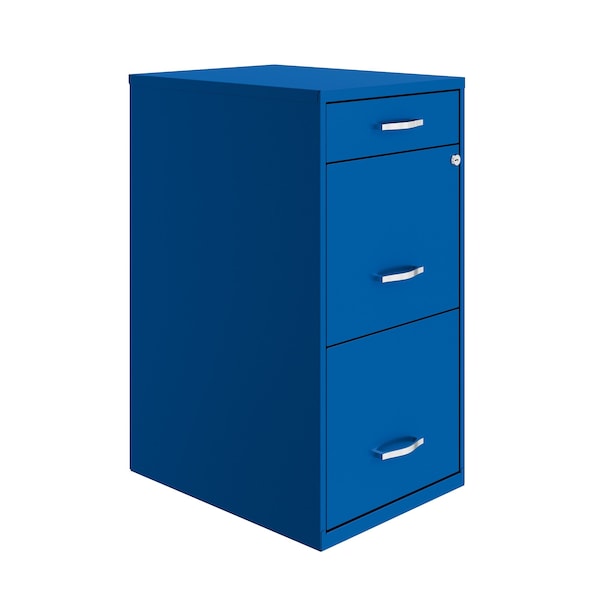 14.25 in W 3 Drawer Vertical File Cabinet W/ Pencil Drawer, Classic Blue