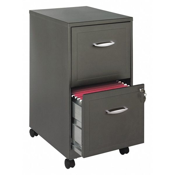 Vertical File Cabinet, Color Metallic Charcoal, Finish Powder Coated, Fire Resistance Rating Not Applicable, Form Factor Letter, Locking Integrated, Material Steel, Number of Drawers 2, Overall Depth 18 in, Overall Height 26 3/4 in, Overall Width 14 1/4 in, Product Type Vertical File Cabinet, Standards Greenguard Gold Certified, TAA Compliant, Inside Drawer Width 12 in, Inside Drawer Depth 16 3/4 in, Lockable Drawer Location All, Inside Drawer Height 10 3/4 in, Configuration (2) Drawers