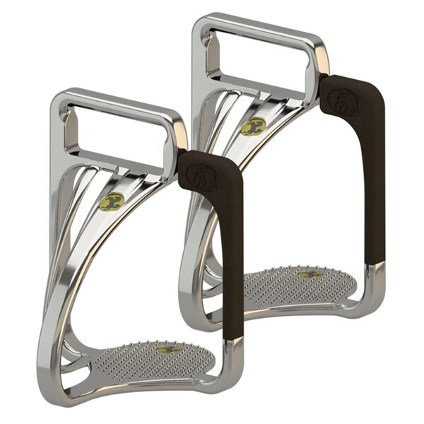 Space Technology Safety Western Stirrups Irons are the safest irons on the planet with a bar design that can prevent dragging. The superior strong foot grip stops feet slipping, and the unique angled foot support keeps your heels down on the horse. They have an extended and elevated platform for better foot support and balance. The 3" neck accommodates almost all western type saddles. Material: High quality stainless steel. Intended for canine use only