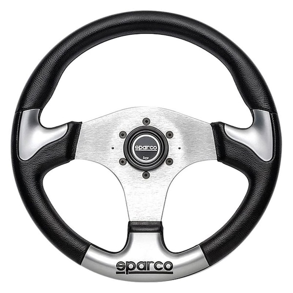 3-Spoke P222 Series Street Racing Leather Steering Wheel with Silver Inserts