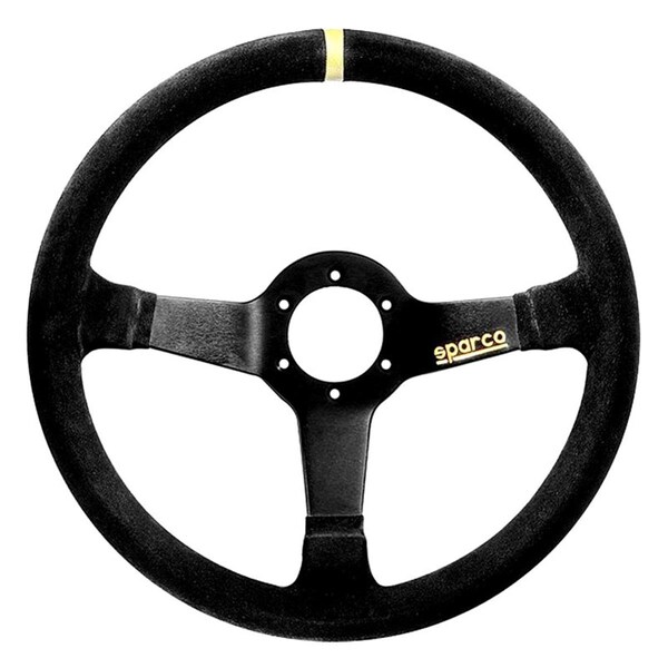 Dished steering wheel with small grip. Developed and designed to meet the highest demands of professional racers this steering wheel from Sparco greatly improves grip for maximum control on the track. Made from first-class materials the product delivers the highest level of quality and durability for a lasting lifespan. Sparco steering wheels are fundamental driving aids that have been developed to satisfy best drivers in the world. Steering wheels are designed to improve driving precision safety and comfort. These components are realized with first-in-class leather and materials that guarantee the best grip and a reduction of vibrations transmitted to the driver. The internal structure special lightweight aluminium alloy or carbon fiber permit to reduce weight and increase lifespan. Sparco steering wheels are mounted as Original Equipment in a lot of rally cars and single seaters. Features -Designed to improve grip and comfort for driving precision -Made from premium quality materials -Features a solid construction for extra durability -Add a touch of style to your vehicle Specifications - Wheel Diameter: 13.75 / 350mm - Dish Depth: 2.50 / 63mm - Grip Color: Black - Grip Material: Suede Leather - Shape: Round - Bolt Pattern: 6 - Weight: 3 lbs