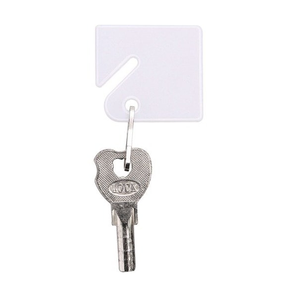 Key tags feature chrome-plated, snap-hook fasteners to quickly hang up your keys and keep them within quick reach. Easy-to-use construction makes it simple to attach to keys for quick use. Slotted design fits most slotted, rack-style key cabinets and boards. Key tags are perfect for rack-style organization.