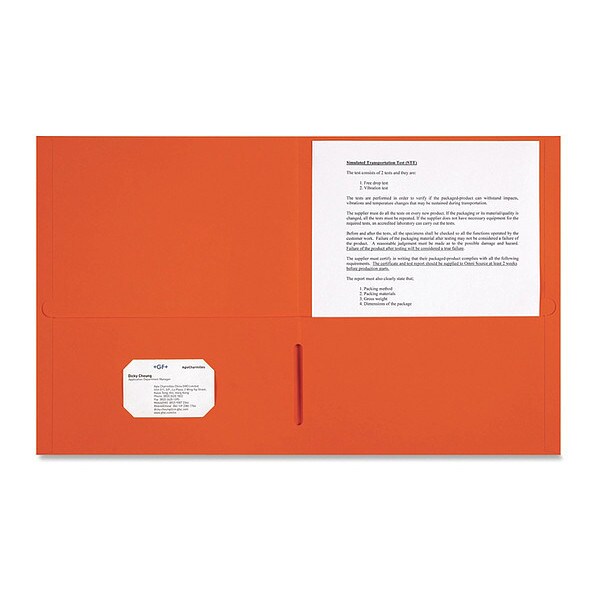 Leatherette Portfolio,2 Pckt,Org5,PK25