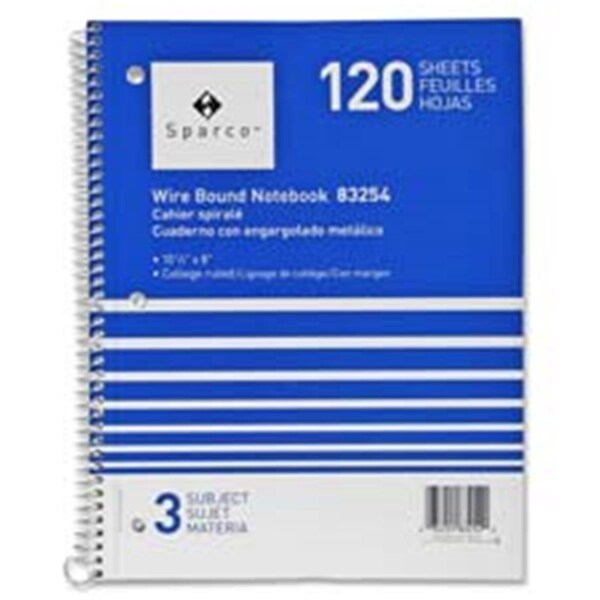 Notebooks- Wirebound- 3 Subject- 10-.50in.x8in.- Wide Ruled- 120SH