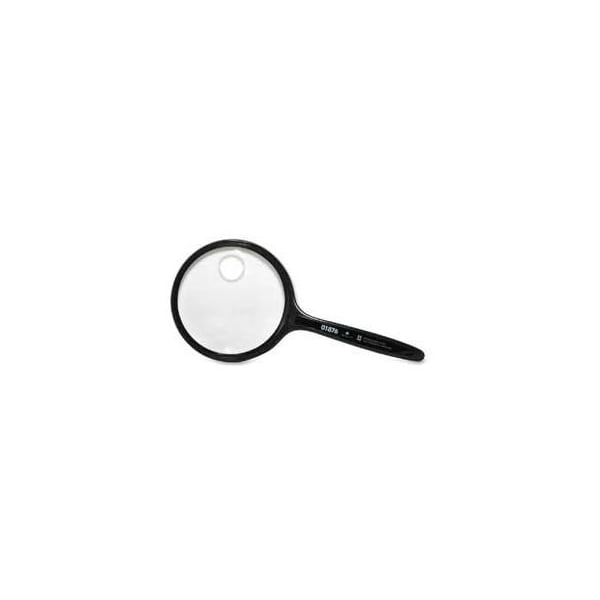 Sparco hand-held magnifier, 2x magnification with 4x inset, 3.5" diameter lens, acrylic handheld magnifier features a round, shatterproof, high-quality acrylic lens with a 2x main magnification and a 4x bifocal inset. Lightweight, one-piece molded handle provides balance. Design also features black plastic frame and handle.