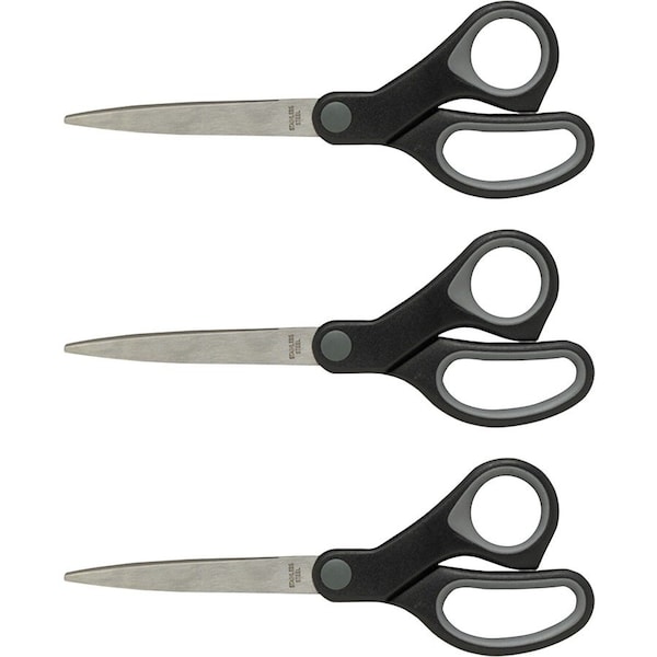 Straight Scissors, Rubber Handles, 7" Straight, 3/BD, Black PK