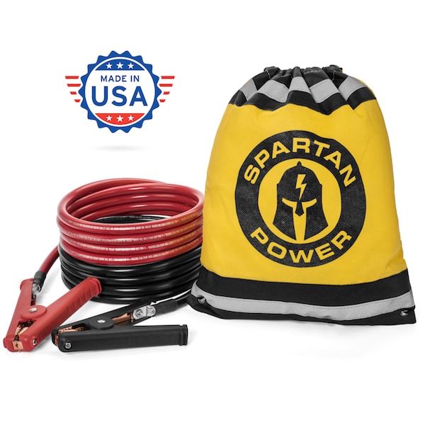 Heavy Duty, Made in the USA 4, 2 or 1/0 AWG alligator clamp jumper cables for jump starting a dead or weak battery. Same great UL listed cable found in other Spartan Power inverter battery cable sets.