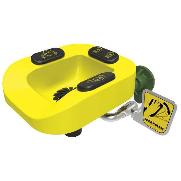 Eye/Face Wash, Eye Wash and Shower Mounting Wall, Eye Wash Bowl Material Plastic, Spray Head Material Plastic, Eye Wash Activates By Push Handle, Eye Wash Covering No, Assembled, ADA Compliance Yes, ANSI Compliant Yes, Number of Heads 2, Yellow