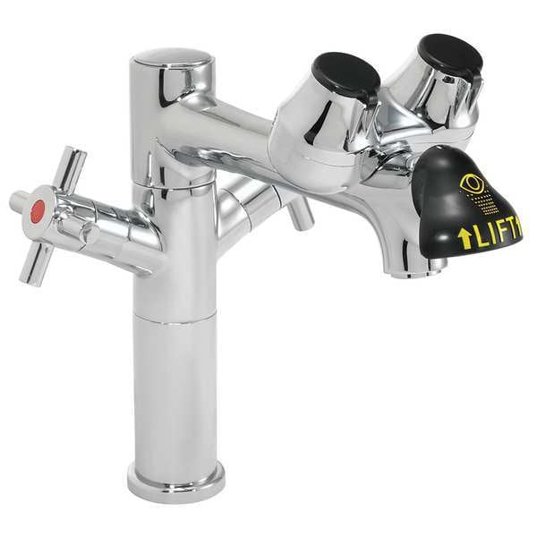 Plumbed Eyewash, Activation Pull Down, Bowl Style Uncovered, Color Silver, Coverage Eyes and Face, Depth 15 in, Height 8 1/4 in, Width 12 in, Environment General Purpose, Hazardous Location Rating Not Rated, Includes Flip-Top Dust Caps with Interval Flow Controls, 8 in L Spout, Universal Emergency Sign, Inlet Pipe Gender Female, Inlet Pipe Size 1/2 in, Inlet Pipe Thread Type NPT, Pipe Material Brass, Mount Type Counter, ADA Compliant No, Mounting Style Standard