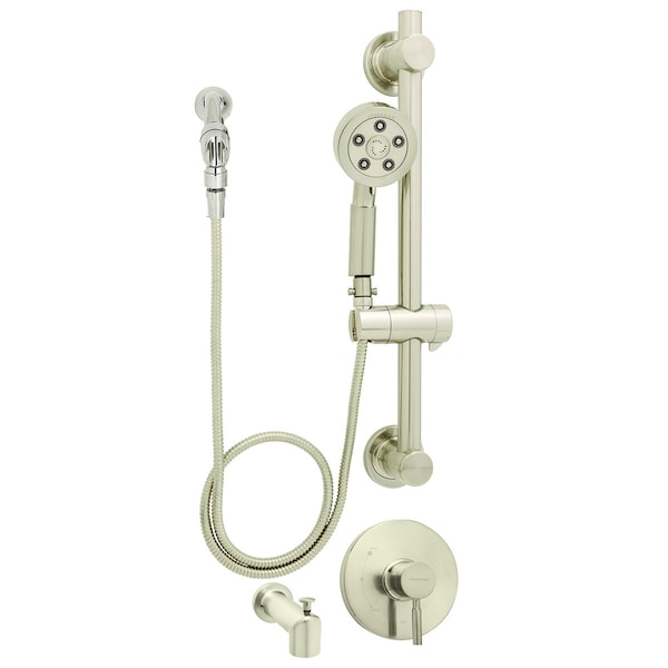 The Neo Trim, Handicap Shower and Tub System lend bold styling to a sleek look. The trim, handicap shower and tub system pairs perfectly with the Neo collection of faucets and other bathroom accessories. The Neo Trim, Handicap Shower and Tub System exemplifies Speakman's quality standard through uniting its Shower Valve Trim (CPT-1001) with the Neo Hand Held Anystream 2.5 GPM Shower Head (VS-3010), Neo Shower Arm and Flange (S-2540), Pause/Trickle Adaptor (VS-156), 24 in. ADA Slide Bar (VS-153-ADA), and Neo Diverter Tub Spout (S-1558). Valve is not included and must be purchased separately. The trim can be paired with either Speakman's Pressure Balancing Valve (CPV-PB) or Thermostatic Valve (CPV-T) in three connection types.