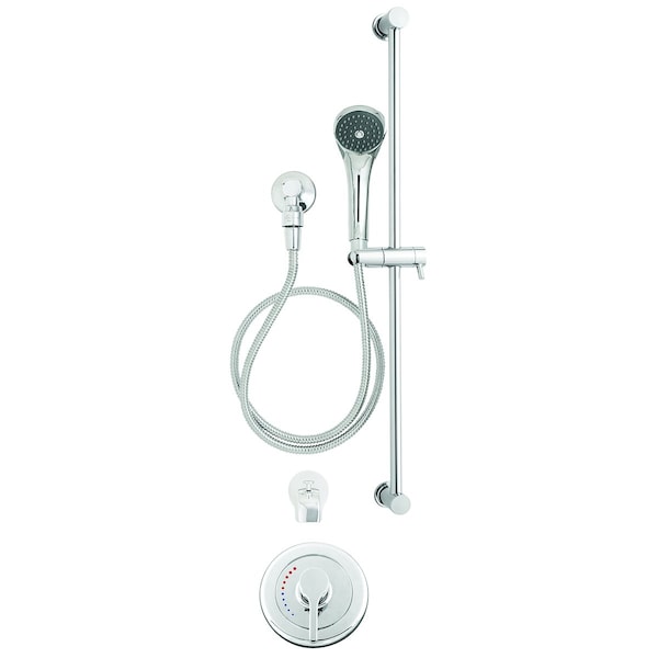 The Sentinel Mark II Trim, Shower and Tub Package was designed to provide high quality durability. The Sentinel Mark II Trim, Shower and Tub Package exemplifies Speakman's quality standard through uniting its Shower Valve Trim (CPT-3001) with a 2.5 GPM Flow Rate Hand Held Shower Head with integral pause/trickle button (VS-100-PC), Shower Ell with Wall Flange (VS-115), 30 in. Slide Bar (VS-123) and 69 in. Metal Stainless Steel Hose, and Diverter Tub Spout (S-1556). Valve is not included and must be purchased separately. The trim can be paired with either Speakman's Pressure Balancing Valve (CPV-PB) or Thermostatic Valve (CPV-T) in three connection types.