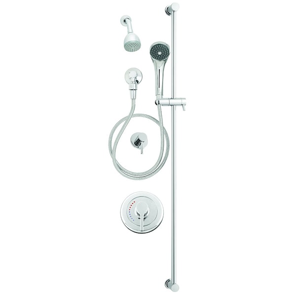The Sentinel Mark II Trim and Shower System was designed to provide high quality durability. The Sentinel Mark II Trim and Shower System exemplifies Speakman's quality standard through uniting its Shower Valve Trim (CPT-3001) with a 2.0 GPM Flow Rate Shower Head (S-2272-E2), a 2.5 GPM Flow Rate Shower Head with integral pause/trickle button (VS-100-PC), Shower Ell with Wall Flange (VS-115), 42 in. Slide Bar (VS-124), 69 in. Metal Stainless Steel Hose, and Transfer Valve Trim (CPT-1110). Shower Valve and Transfer Valve are not included and must be purchased separately. The shower trim can be paired with either Speakman's Pressure Balancing Valve (CPV-PB) or Thermostatic Valve (CPV-T) in three connection types. The transfer trim is to be paired with Speakman's Transfer Valve (CPV-TV).
