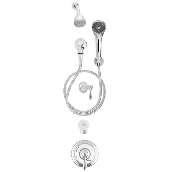 The SentinelPro Trim, Shower and Tub System was designed to provide high quality durability. The SentinelPro Trim, Shower and Tub System exemplifies Speakman's quality standard through uniting its Shower Valve Trim (CPT-5001) with a 2.0 GPM Flow Rate Shower Head (S-2272-E2), a 2.5 GPM Flow Rate Shower Head with integral pause/trickle button (VS-100-PC), Shower Arm and Flange (S-2500), Supply Ell with Wall Flange (VS-115), 69 in. Metal Stainless Steel Hose, Diverter Tub Spout (S-1556), and Transfer Valve Trim (CPT-1110). Shower Valve and Transfer Valve are not included and must be purchased separately. The shower trim can be paired with Speakman's Thermostatic/Pressure Balancing Valve (CPV-TP) in three connection types. The transfer trim is to be paired with Speakman's Transfer Valve (CPV-TV).