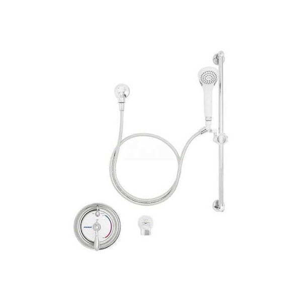 Speakman sm-3450 sentinel mark ii regency pressure balance valve with lever handle the speakman sentinel mark ii shower valve line is designed to provide high quality anti-scald pressure balanced protection. Speakman sentinel mark ii valves feature an independent center sleeve which allows up to 1 of roughing in variation. Temperature can be adjusted through the temperature limit stops and the valves have a ceramic temperature regulating module. Sentinel mark ii sm-3400 valves feature polished chrome plated brass trim with a metal index plate and are vandal resistant. Each valve is equipped with integral stops. Sentinel mark ii valves provide superior protection down to 2.0 gpm. The sm-3450 features a metal lever handle for easy operation. The sm-3450 a vs-1000-af hand shower with supply ell, vacuum breaker & mounting post, s-1556 diverter tub spout and a vs-123 30 in slide bar. The sm-3450 is certified to meet asse 1016 and asme a112.18.1/csa b125.1 standards.
