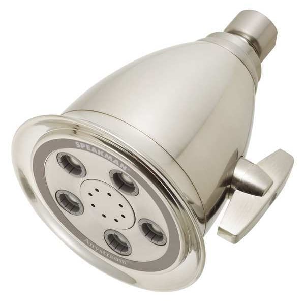 Fixed Showerhead, ADA Compliance No, Non CEC Compliant, Connection Size 1/2 in, NPTF, Circle, Not Applicable, Fixed Showerhead Flow Rate 2.5 gpm, Fixed Showerhead Thickness 5 1/2 in, Fixed Showerhead Width 4 1/8 in, Handheld Showerhead Flow Rate Not Applicable, Handheld Showerhead Thickness Not Applicable, Handheld Showerhead Width Not Applicable, Ligature Resistant No, Manufacturers Warranty Length 1 yr, Speakman, Hotel S-2005-HB, 1/2 in NPTF, Showerhead Function Multi, Brass, Plastic