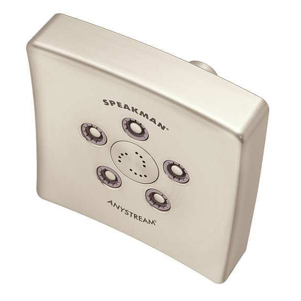 Fixed Showerhead, ADA Compliance No, Non CEC Compliant, Connection Size 1/2 in, NPTF, Square, Not Applicable, Fixed Showerhead Flow Rate 2.5 gpm, Fixed Showerhead Thickness 3 1/4 in, Fixed Showerhead Width 5 1/2 in, Handheld Showerhead Flow Rate Not Applicable, Handheld Showerhead Thickness Not Applicable, Handheld Showerhead Width Not Applicable, Ligature Resistant No, Manufacturers Warranty Length 1 yr, Speakman, Kubos S-3021, 1/2 in Female NPTF, Showerhead Function Multi, Brass, Plastic