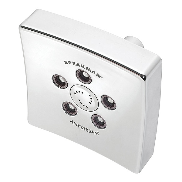 Fixed Showerhead, ADA Compliance No, Non CEC Compliant, Connection Size 1/2 in, NPTF, Square, Not Applicable, Fixed Showerhead Flow Rate 2.5 gpm, Fixed Showerhead Thickness 3 1/4 in, Fixed Showerhead Width 5 1/2 in, Handheld Showerhead Flow Rate Not Applicable, Handheld Showerhead Thickness Not Applicable, Handheld Showerhead Width Not Applicable, Ligature Resistant No, Manufacturers Warranty Length 1 yr, Speakman, Kubos S-3021, 1/2 in Female NPTF, Showerhead Function Multi, Brass, Plastic