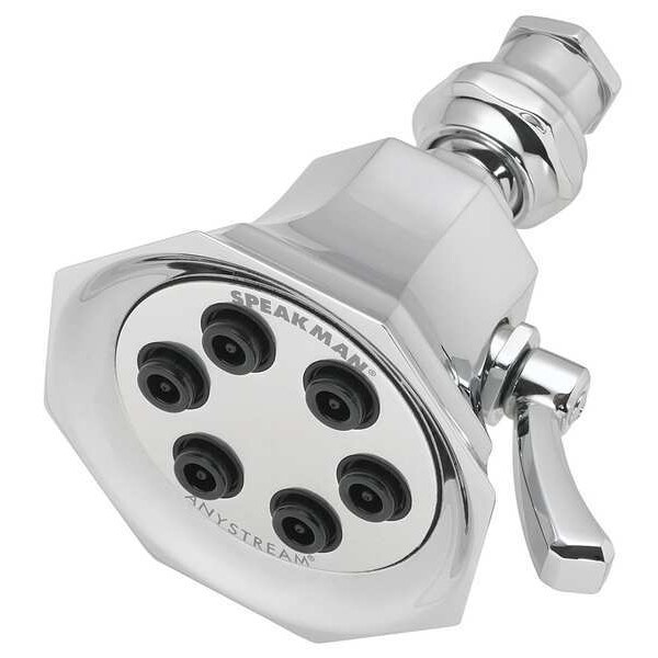 Fixed Showerhead, ADA Compliance No, Non CEC Compliant, Connection Size 1/2 in, FNPT, Circle, Not Applicable, Fixed Showerhead Flow Rate 2.5 gpm, Fixed Showerhead Thickness 3 3/8 in, Fixed Showerhead Width 4 7/8 in, Handheld Showerhead Flow Rate Not Applicable, Handheld Showerhead Thickness Not Applicable, Handheld Showerhead Width Not Applicable, Ligature Resistant No, Manufacturers Warranty Length 1 yr, Speakman, Vintage S-2255, 1/2 in FNPT, Showerhead Function Multi, Brass