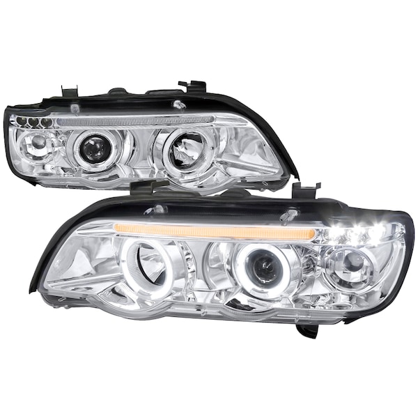 01-03 Bmw E53 X5 Halo LED Projector Headlight Chrome Housing