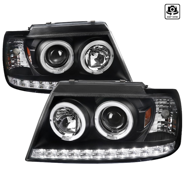 02-05 Ford Explorer Projector Headlights Black Housing Clear Lens