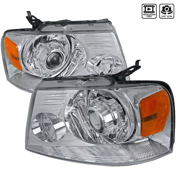 04-08 Ford F150 Retro Fit Projector Headlight Chrome Housing