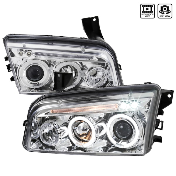 05-10 Dodge Charger Halo LED Projector Chrome