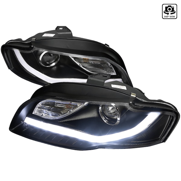 06-08 Audi A4 Projector Headlight Black R8 Style With LED Signal