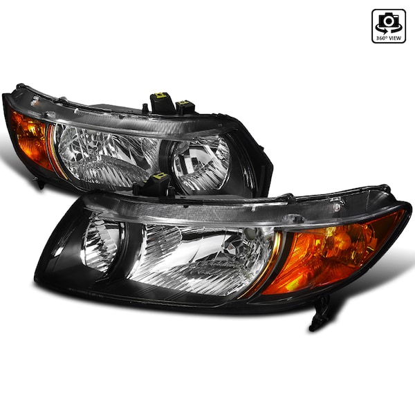 06-10 Honda Civic Euro Headlights Black Housing