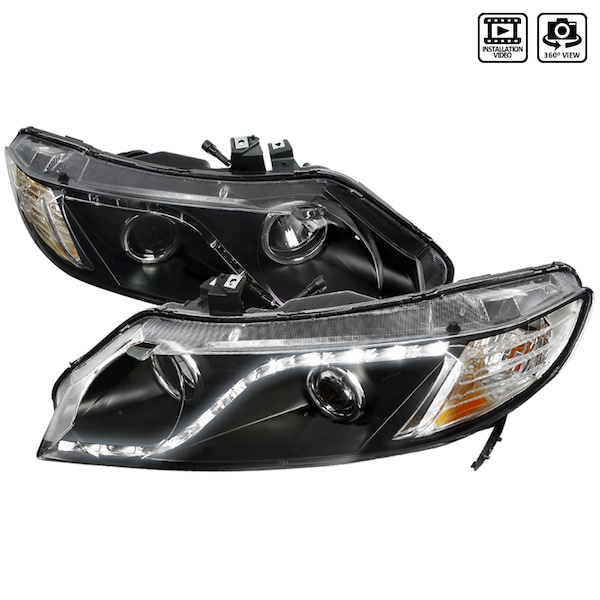 06-11 Honda Civic 4 Doors R8 Style Projector Headlight Black