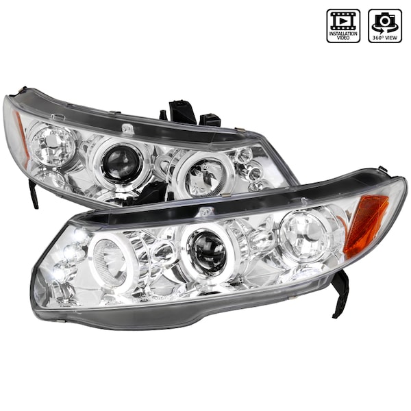 06-11 Honda Civic Halo LED Projector Chrome, 2LHP-CV062-TM