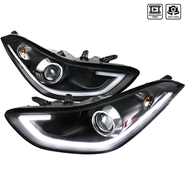 11-13 Hyundai Elantra Projector Headlight Black Housing