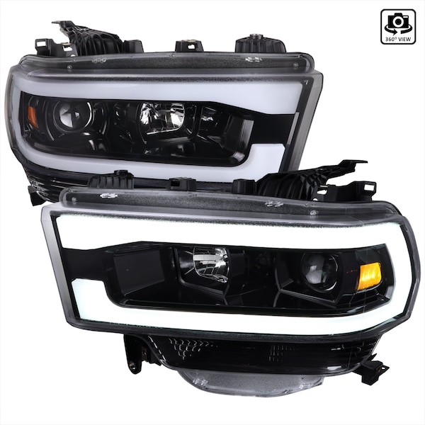 2500 PROJECTOR HEADLIGHTS GLOSSY BLACK HOUSING WITH CLEAR LENS, 2PK