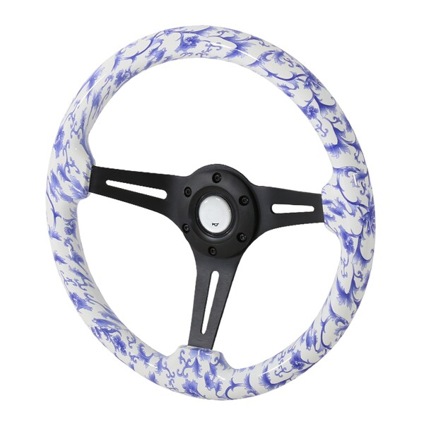 350Mm Steering Wheel With Graphic- Black Spoke- Blue Flower (Discontinued)