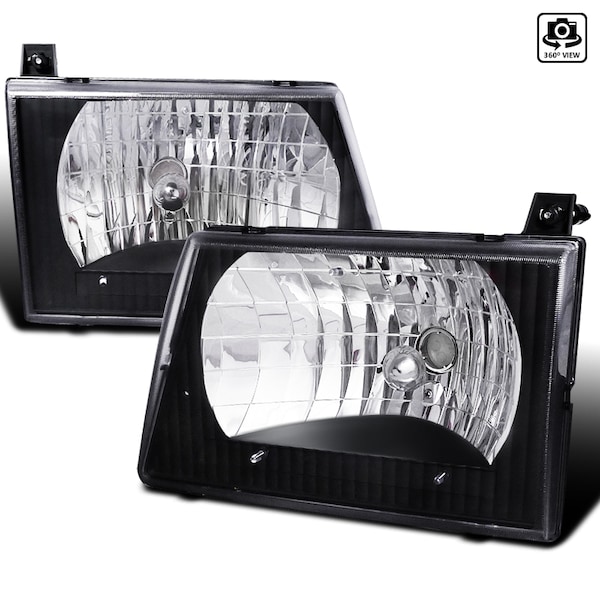 92-06 Ford Econoline Euro Headlight Black Housing