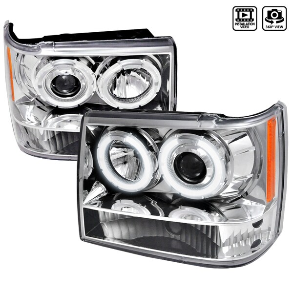 93-96 Jeep Grand Cherokee Halo LED Projector Chrome