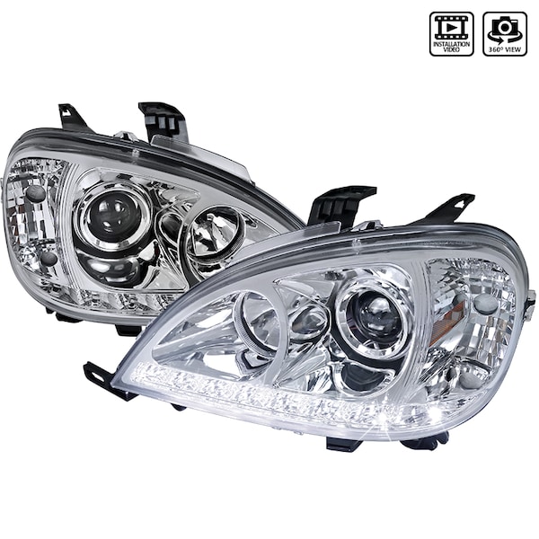98-01 Mercedes W163 Ml Halo Projector Headlights Chrome